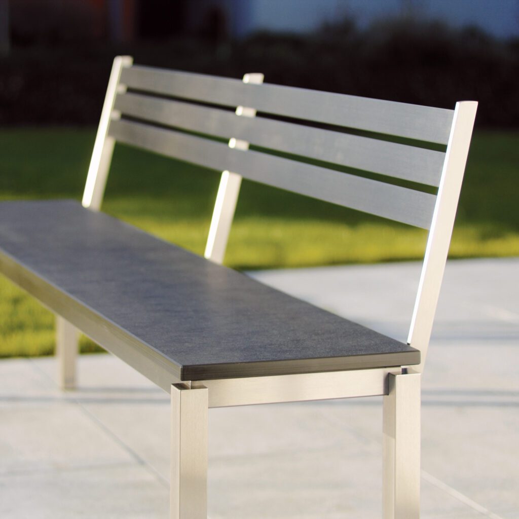 Abhängig von der Tischplatte ist der QUADRO für den Einsatz im Innen und Aussenbereich geeignet. Das Gestell wird aus hochwertigem Edelstahl angefertigt. Optional wählbare Ansteckplatten und verschiedene Fussabschluss-Möglichkeiten runden das durchdachte Gesamtkonzept ab. Die Vielfalt lässt hinsichtlich Material und Grösse keine Wünsche offen. Die QUADRO Bank mit oder ohne Rückenlehne hat eine identische Formsprache wie der Tisch und ist eine ideale Ergänzung.
