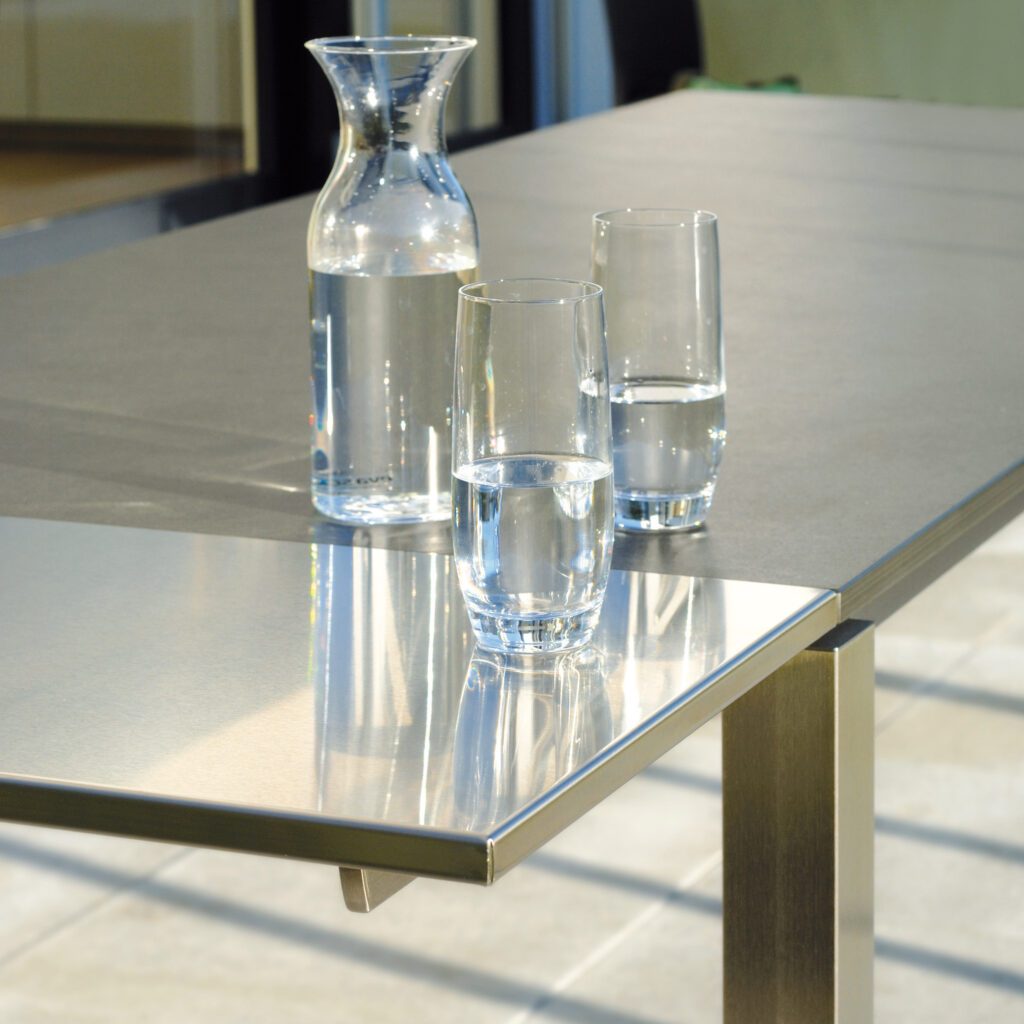 Dieser Tisch steht für absolute Härte und Langlebigkeit. Die hervorragenden Eigenschaften von Keramik sind geradezu prädestiniert für Tischplatten im Innen- und Aussenbereich. Säurefest, pflegeleicht, unempfindlich und wetterfest sind die wichtigsten Attribute, die SERAMIK mit Leichtigkeit erfüllt.